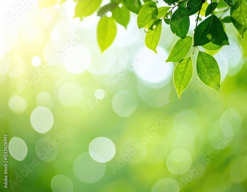 Naklejka premium Nature's vibrant green leaves glowing in sunlight serene forest environment...