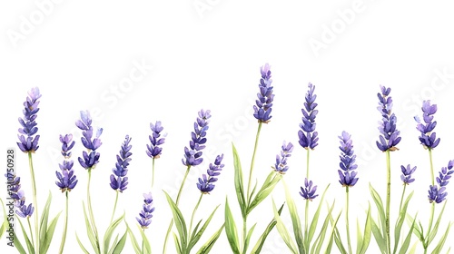 © nilawan, Naklejka premium Nature's watercolor lavender blooms in a serene botanical garden floral art