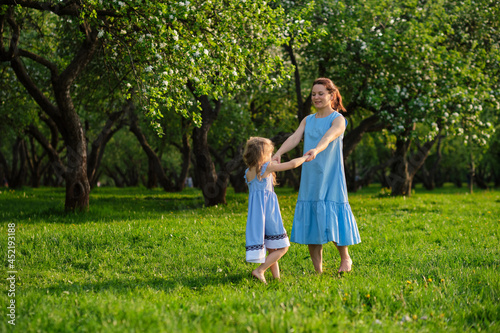 Obraz premium nature scene with family outdoor lifestyle. Mother and little daughter...