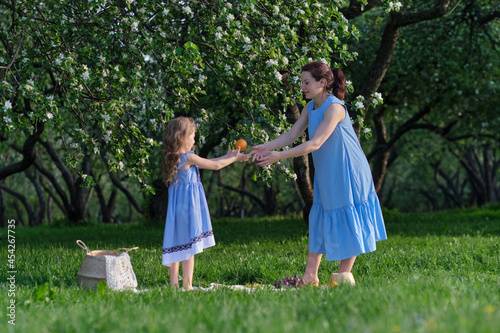 Obraz premium nature scene with family outdoor lifestyle. Mother and little daughter...
