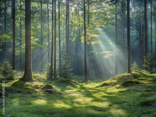 © daiwei, Obraz premium Nature scenes with backlit leaves and sunlight halos are suitable for occasions where a tranquil, natural, artistic atmosphere is needed, such as commercial design, branding and personal decoration.