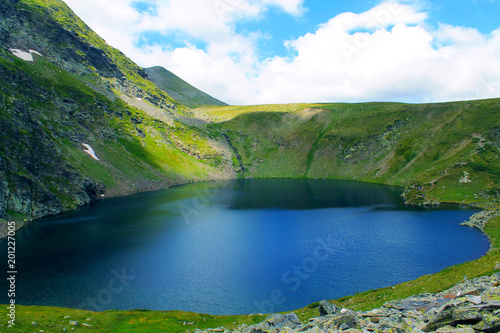 Fototapeta premium nature seven rila lakes the eye lake attraction close panoramic view spring season