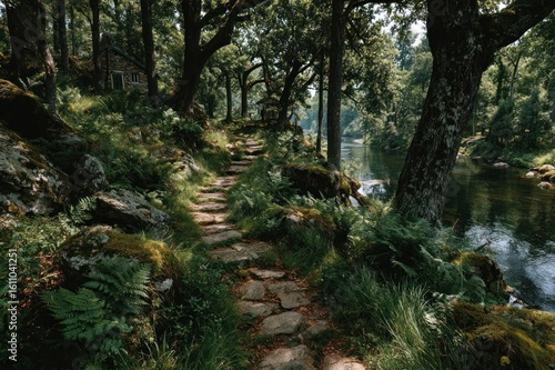 Obraz premium Nature trail walk in wildlife terrain, surrounded by foliage