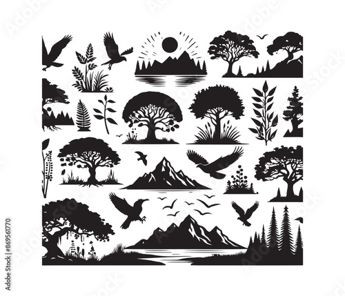 © Graphic_Design, Fototapeta premium Nature vector art graphic resources silhouette vector style, white background