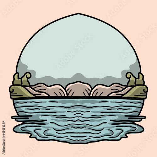 Fototapeta premium Nature view cartoon illustration coloring illustration