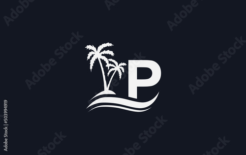 Naklejka premium Nature water wave and beach tree vector logo design with the letter and alphabet P