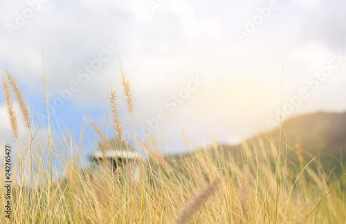 Fototapeta premium Nature wild grass flower. Golden sunset in nature. Shallow depth of field.