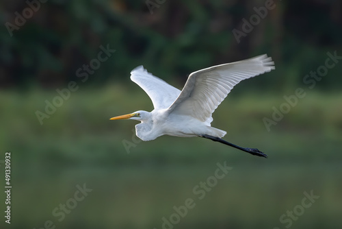 © alenthien, Obraz premium Nature wildlife image of cattle egret on flying