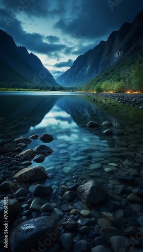 © Shahida, Obraz premium natures beauty reflected in mountain waters generated by ai