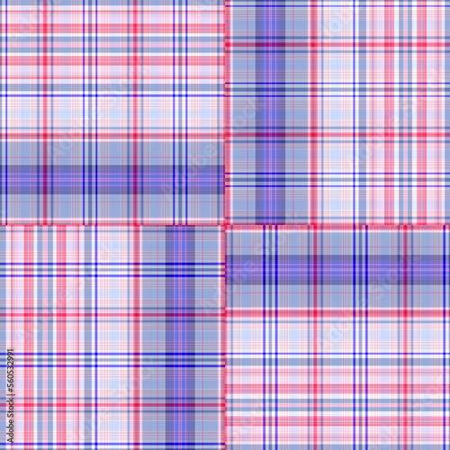 © Nautical, Fototapeta premium Nautical gingham in coastal beach house check fabric tile. Seamless red blue white sailor flannel textile tartan repeat swatch.