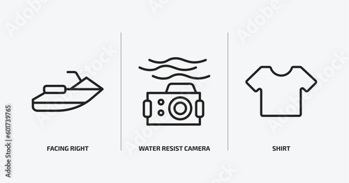 Naklejka premium nautical outline icons set. nautical icons such as facing right, water resist camera, shirt vector. can be used web and mobile.