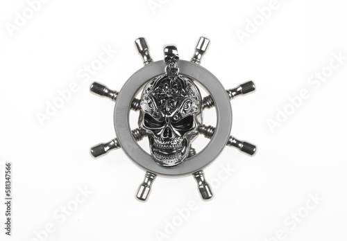 © serikbaib, Obraz premium nautical steering wheel with skull