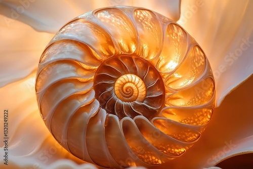 © Tatyana, Obraz premium Nautilus Shell Closeup Golden Spiral Structure with Float Chambers