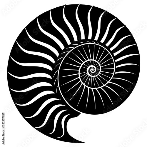 © MstAnoara, Obraz premium nautilus shell isolated on black