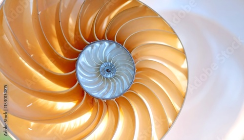 © yoga, Obraz premium Nautilus shell section with closeup, and spiral.