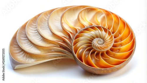 Obraz premium Nautilus Shell, Spiral, Golden Ratio, Object on White Background