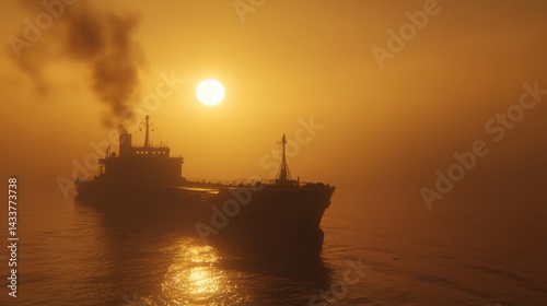 © Sawat, Fototapeta premium Naval cargo ship sailing through international waters at dawn