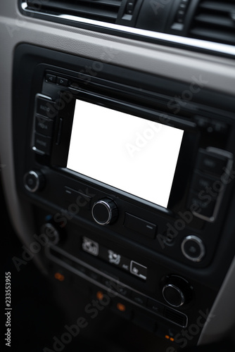 © Lalandrew, Fototapeta premium Navigation system with mockup in modern car