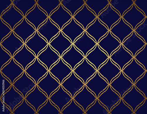 © Greta, Naklejka premium Navy Blue and Gold Art Deco Seamless Wallpaper