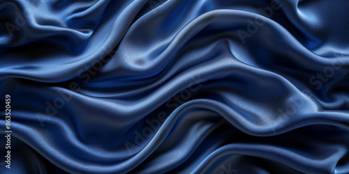 Fototapeta premium navy blue elegant abstract background silk satin fabric nice folds beautiful dark blue background wavy lines copy space