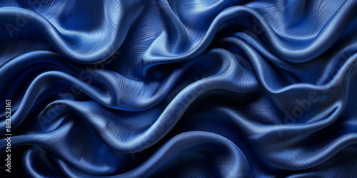 Fototapeta premium navy blue elegant abstract background silk satin fabric nice folds beautiful dark blue background wavy lines copy space