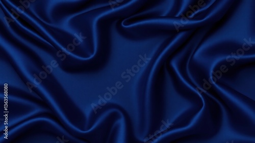 Obraz premium Navy blue silk satin. Dark elegant luxury abstract background with space for design. Shiny smooth fabric. Soft folds. Drapery. Color gradient. Lines. Wavy pattern. Christmas, birthday, romance.