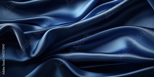 Fototapeta premium Navy blue silk satin. Silky shiny fabric. Dark luxury background with space for design. Banner. Wide. Long. Panoramic.