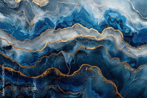 © Bargais, Fototapeta premium Navy, white and gold marble swirls.