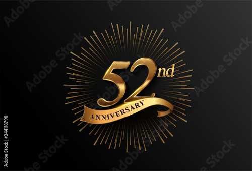 © Vectorideas, Fototapeta premium 52nd anniversary logotype with fireworks and golden ribbon, isolated on elegant background. vector anniversary for celebration, invitation card, and greeting card