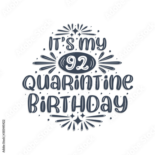 Naklejka premium 92nd birthday celebration on quarantine, It's my 92 Quarantine birthday.