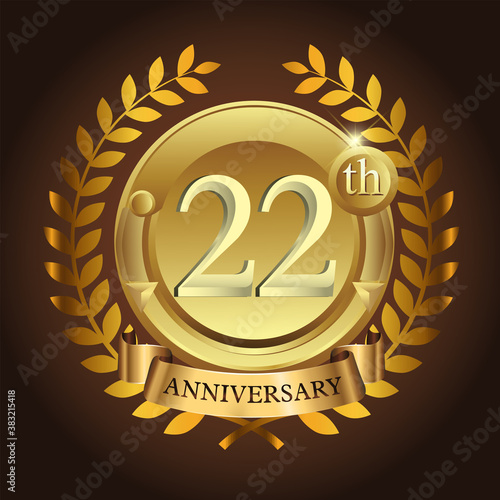© Vectorideas, Naklejka premium 22nd golden anniversary wreath ribbon logo
