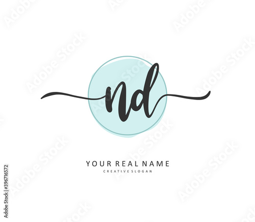 Fototapeta premium ND Initial letter handwriting and signature logo. A concept handwriting initial logo with template element.