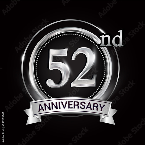 Fototapeta premium 52nd silver anniversary logo with ribbon and ring