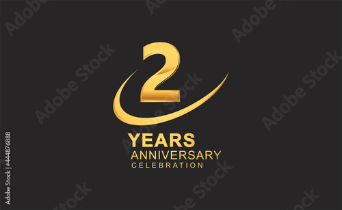 Fototapeta premium 2nd years anniversary with swoosh design golden color isolated on black background for celebration