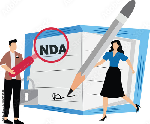 © Master Art, Obraz premium NDA or Non disclosure agreement contract businessman holding signing pen with NDA locked with padlock document.Non Disclosure Agreement