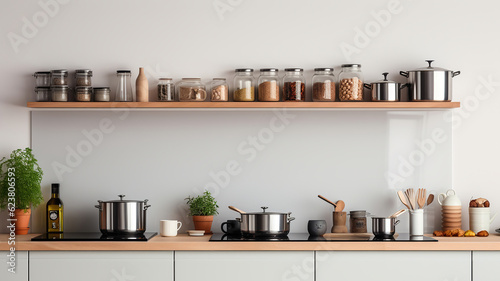 Fototapeta premium Neat and Minimalist Kitchen with Well-Organized Cooking Utensils