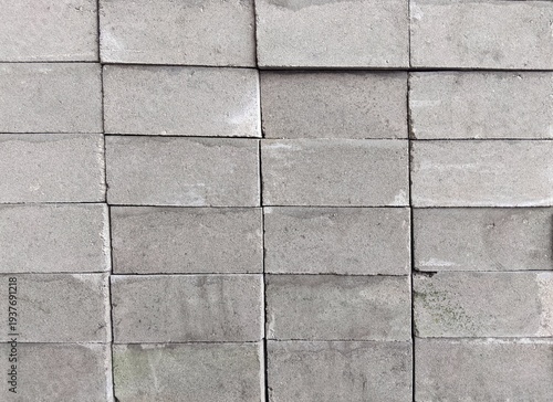 Fototapeta premium ​Neat stack of gray concrete blocks background texture