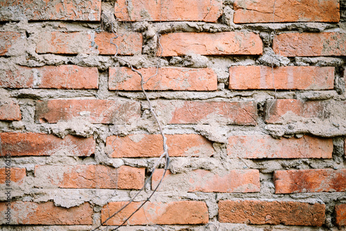 Fototapeta premium Neatly arranged layers of red brick make up the outer surface of a wall,...