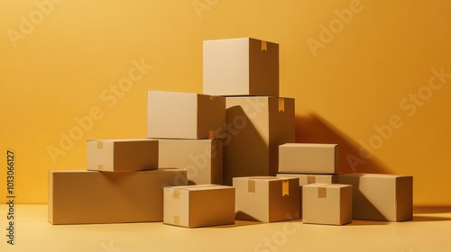 Fototapeta premium Neatly Stacked Boxes Ready for Shipping