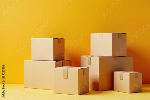 Fototapeta premium Neatly stacked cardboard boxes, various sizes, logistics, ecommerce