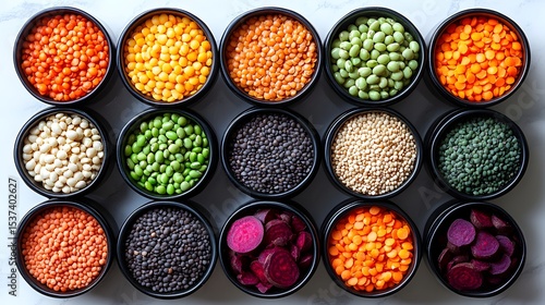 © SamsuAI, Fototapeta premium Neatly styled macrobiotic food in clean layout