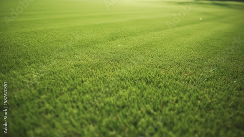 Fototapeta premium Neatly Trimmed Green Grass Background for Landscaping or Golf Course Design. Generative AI.