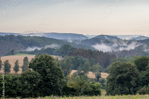 © parallel_dream, Obraz premium Nebel am Abend über der Sächsischen Schweiz