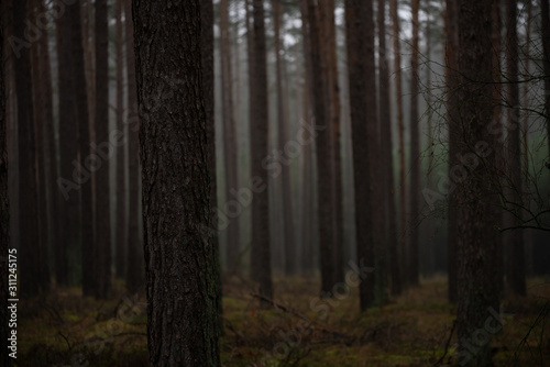 Naklejka premium Nebel im Wald, Dunkel, Bäume im Winter