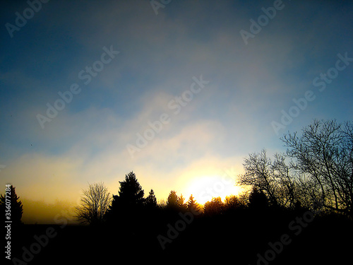 © WernerHilpert, Obraz premium Nebel, ist ein Teil der Atmosphäre, in dem Wassertröpfchen fein verteilt sind.
