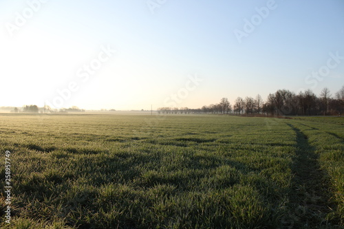 Obraz premium Nebelige Feldflur in der Morgensonne