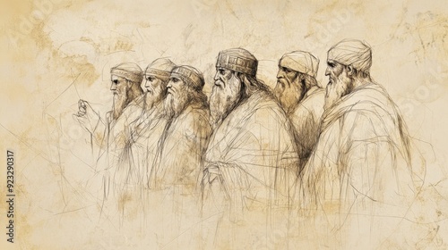 © T Studio, Fototapeta premium Nebuchadnezzar Orders the Blinding of Zedekiah and Execution of His Sons During the Fall of Jerusalem, 2 Kings Biblical Illustration, Bible Wall Art, Beige Background