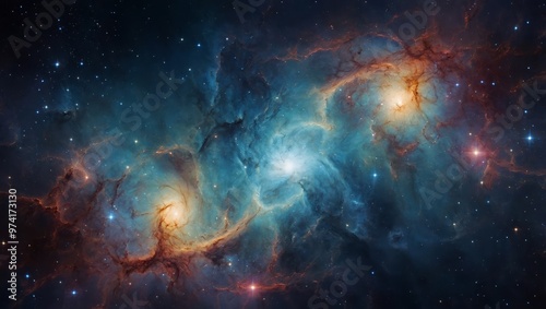 © Tamii, Fototapeta premium Nebula and galaxies in space. Abstract cosmos background