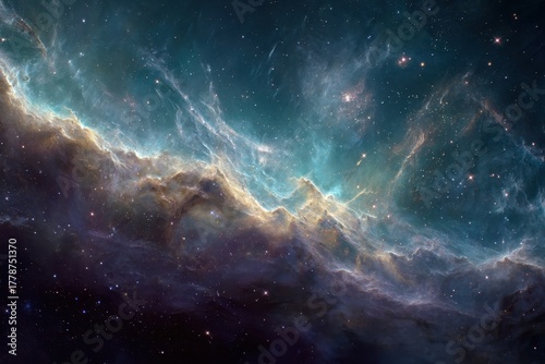 © Ifti Digital, Fototapeta premium Nebula and stars captured in a stunning cosmic display featuring vibrant colors and intricate formations in the depths of space