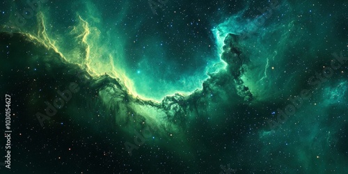 © Hamidakhanom, Fototapeta premium Nebula background shimmering green